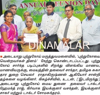 - “BEST OUTGOING STUDENT” in department of radiation oncology in cancer Institute, Adyar year 2015.